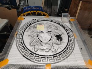 At this stage of completion, I had spend 30 hours just laying Medusa’s tesserae.
