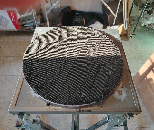No need to get into too many details, it is just a long process. I use a water grinder with diamond grinding wheels of various grains. After a while, I filled up small gaps between the tesserae with black grout, then reverted to polishing all the way up to a 600 grit.