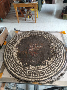 on January 5, I flipped the mosaic and began to carefully remove the fiberglass mesh I had laid my tesserae on.