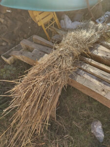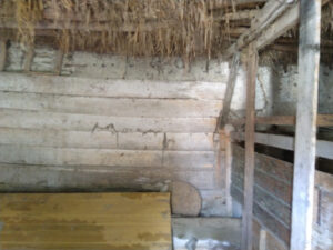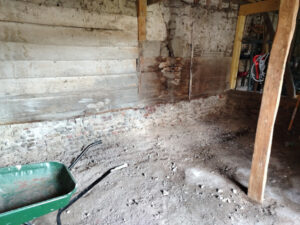 2025 marquera le début de la construction de l‘atelier de mosaïques. Pour commencer, au printemps, j‘ai commence a débarrasser les étables de la paille et du foin qui servait de plafond…