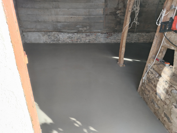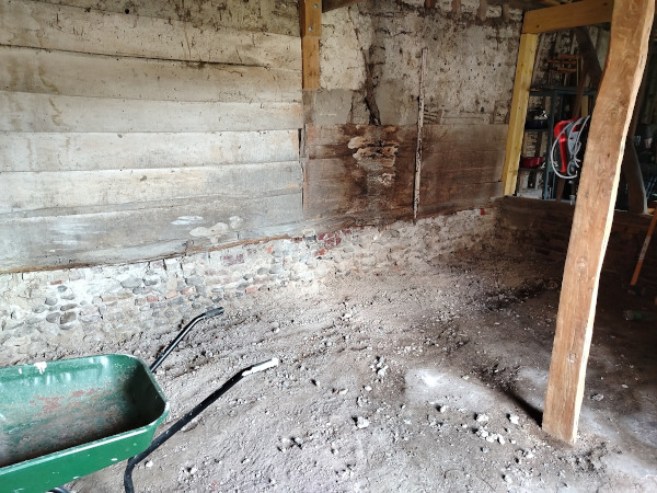 Ensuite, il a fallu s’occuper du sol, Cette partie de la grange était en fait une étable a vaches.
